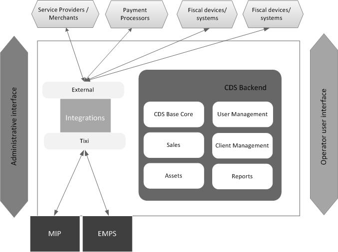 The system supports also integration with fiscal devices and systems and can be integrated to other external systems and devices like vending machines, terminals and other. The product is offered as an independent product and as a fully integrated solution with other Tixi products.
